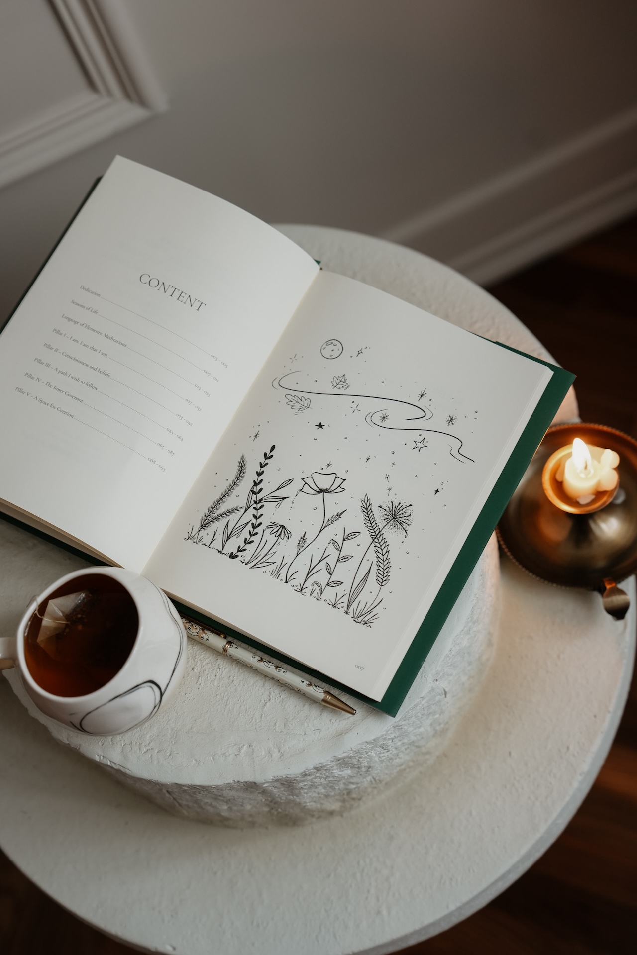 • Illustrated pages and inspiring quotes to accompany your process with beauty and lightness