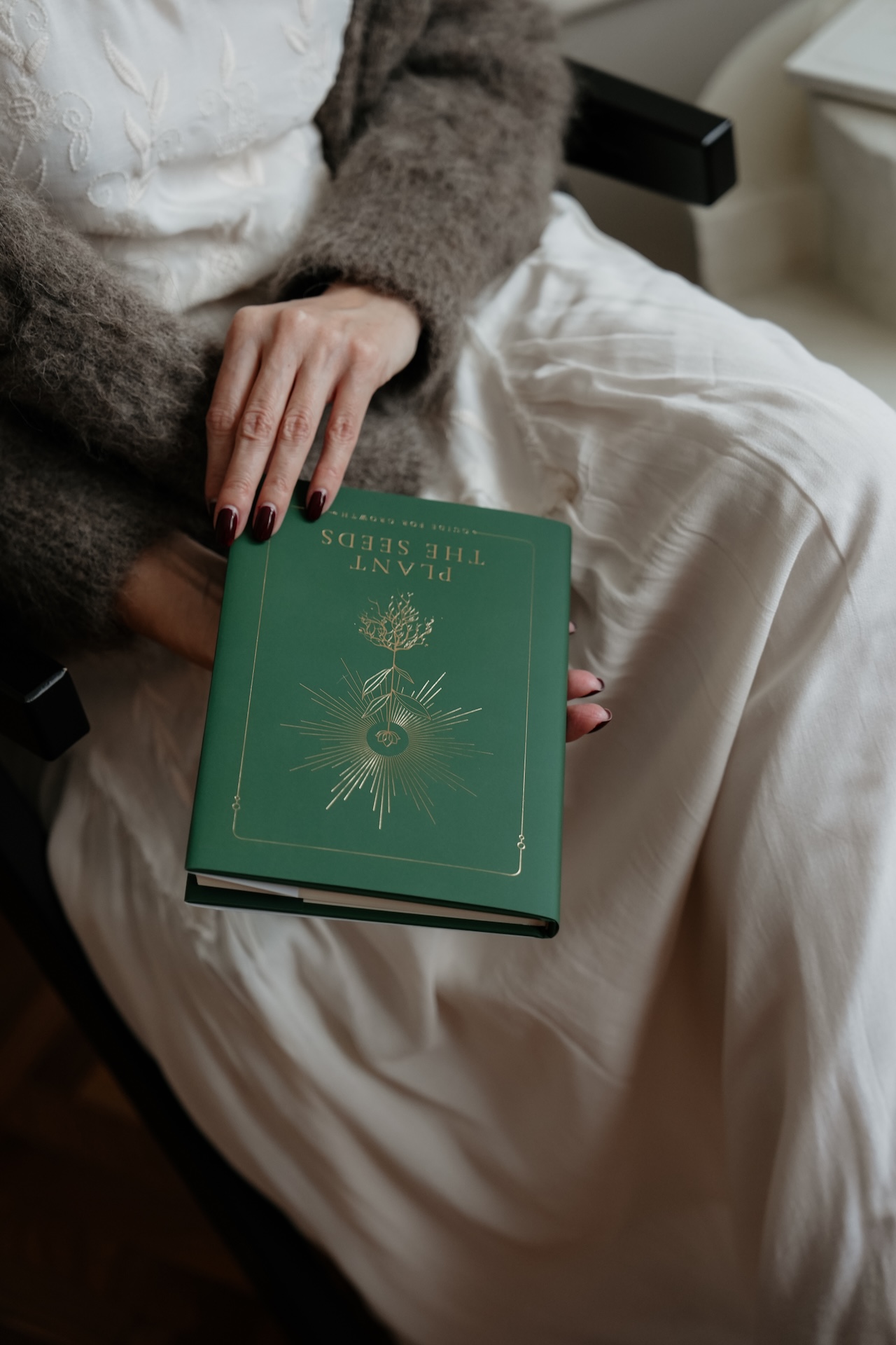 Deep green cover with antique gold details — blending depth, grace, and quiet strength.